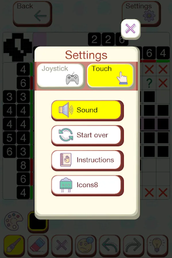 ● Use both Joystick or simple Touch to mark cells