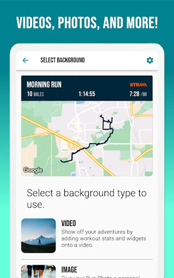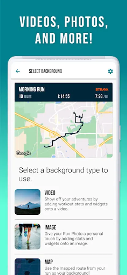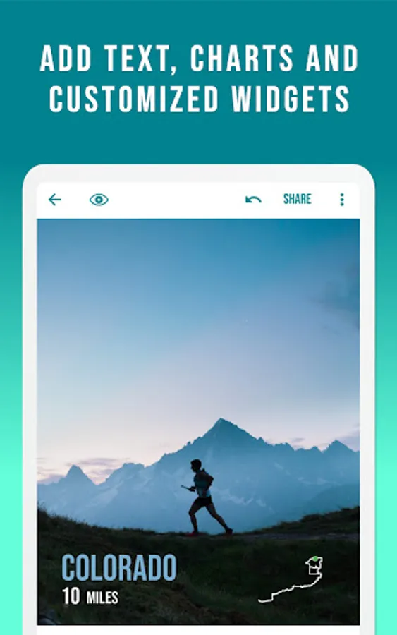 - Add custom text and background, Run Photo has more customization than any other workout sharing app