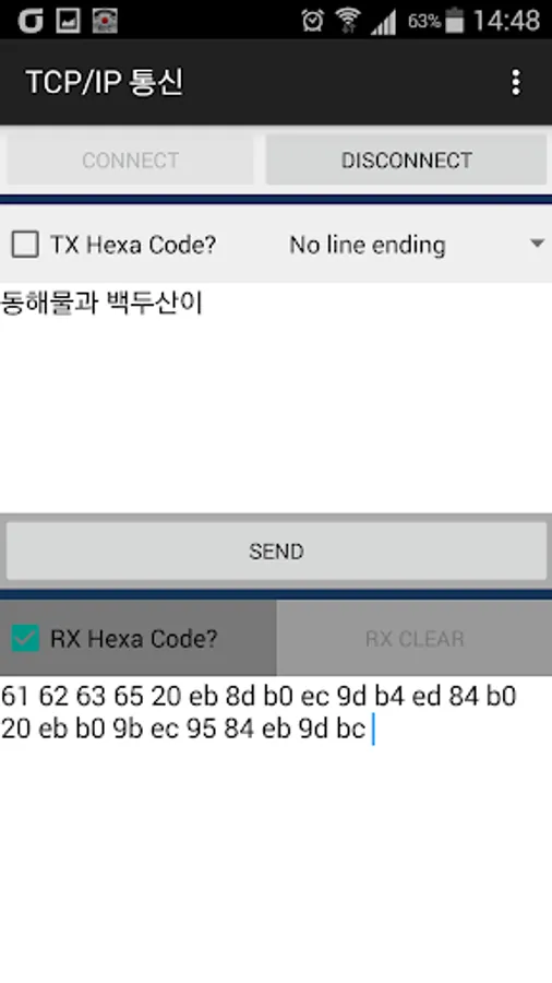 Text, by selecting the HEXA, transmission, can receive and