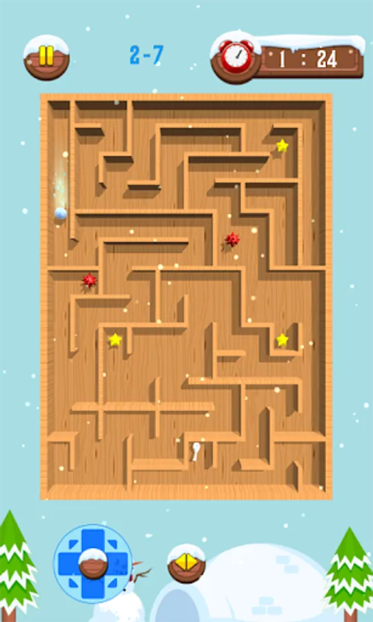 The game comes in wooden frame style with snow theme. Player needs to roll the snow ball to pick the key and find the target. On way pickup the stars that helps to unlock new stages. Use smartphone motion controller or joypad to roll the snow ball.