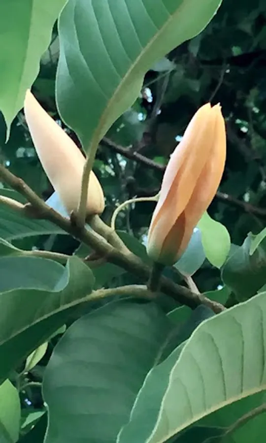 In its native range Magnolia champaca grows to 50 metres or taller. Its trunk can be up to 1.9 metres in diameter. The tree has a narrow umbelliform crown.