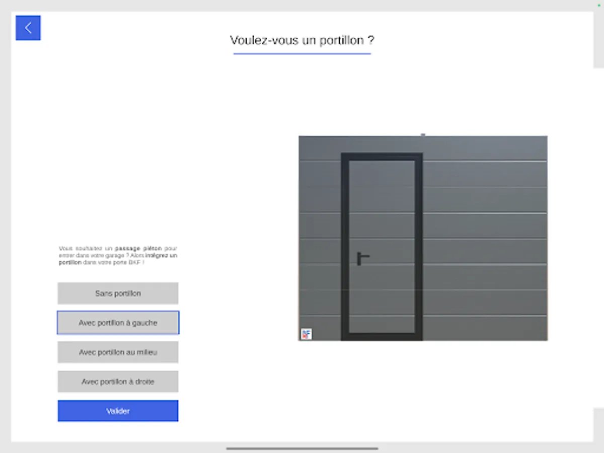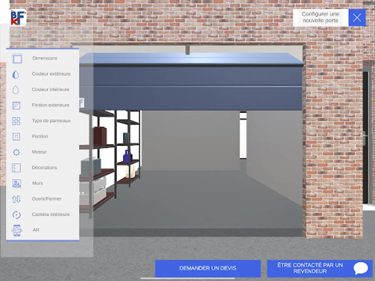 Our BKF configurator allows the configuration of high-end garage doors. Configure the doors among our multiple products, change the colors, the options (with or without gates, choice of decorations, etc.) and visualize the result directly at home thanks to augmented reality!