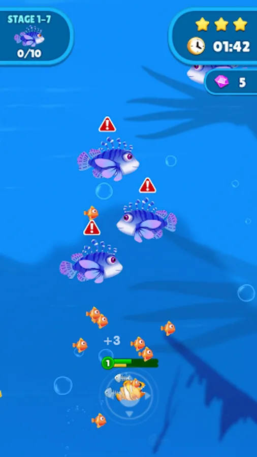 Hey there, you! You're not just any fish – you're a little goldfish with a HUGE hunger! But, no worries, you're on an ocean adventure now. Off you go into the deep blue, chomping on everything in your path. And guess what? The more you eat, the bigger you'll grow!