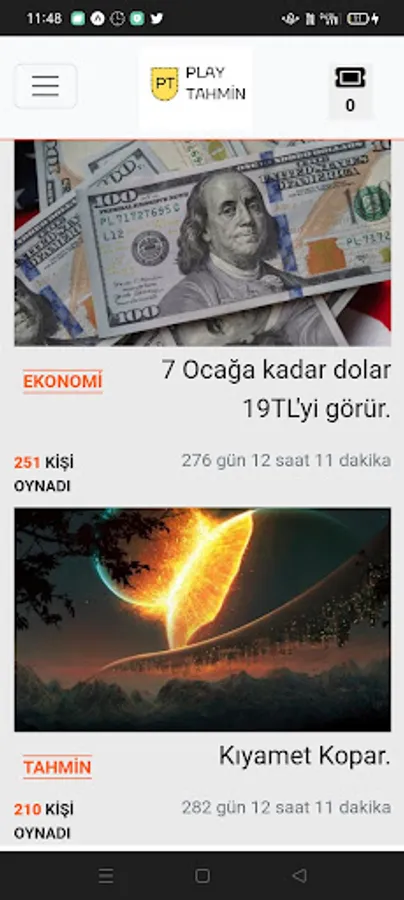 Play Prediction is an application that allows you to follow the agenda by gamifying and at the same time you can get gift certificates from this game. New predictions are posted on the Website every day and site users try to predict the results of the predictions. For example, will the dollar see 21 TL this week? A prediction on the theme is opened by site administrators, users bet using their virtual currency WP and try to multiply their virtual money. They also get gift certificates from the store for the virtual money they fold.