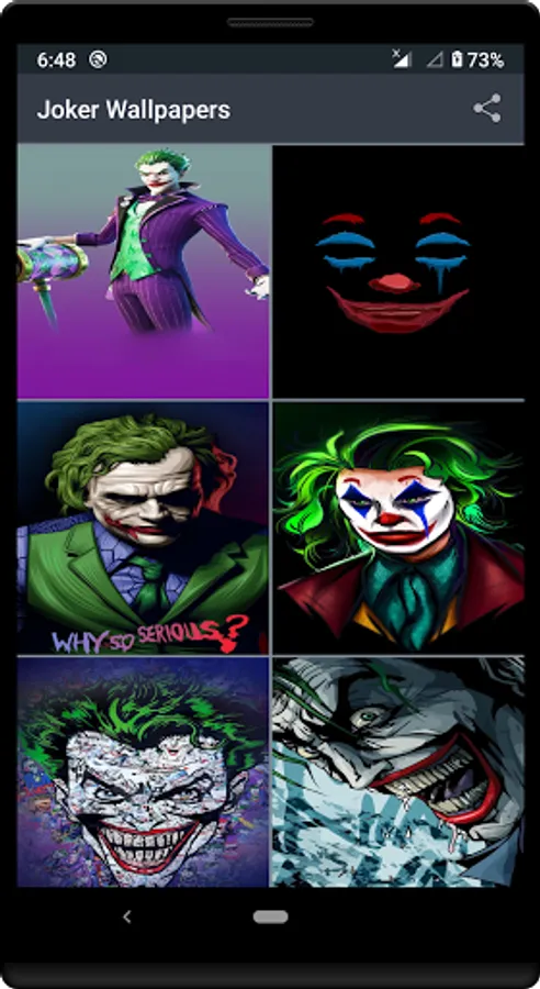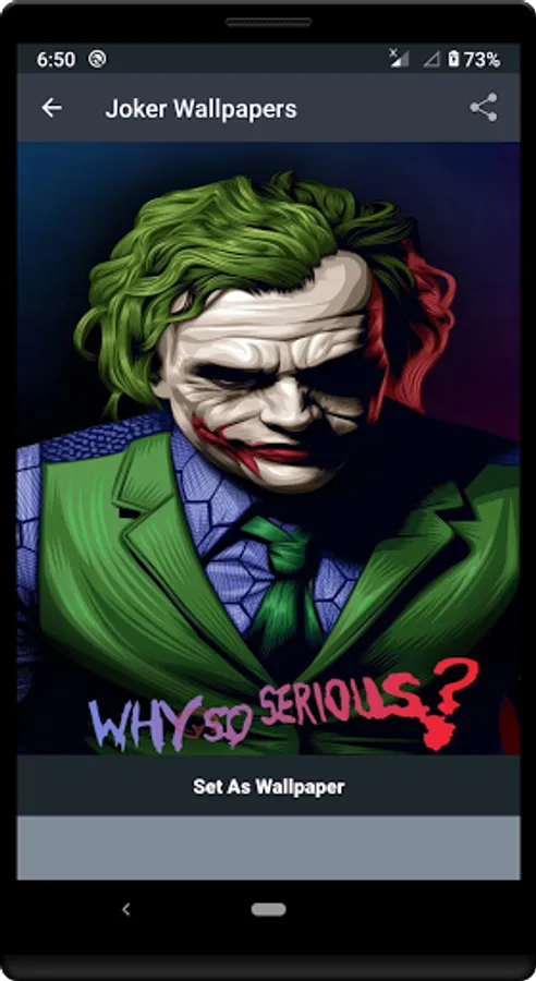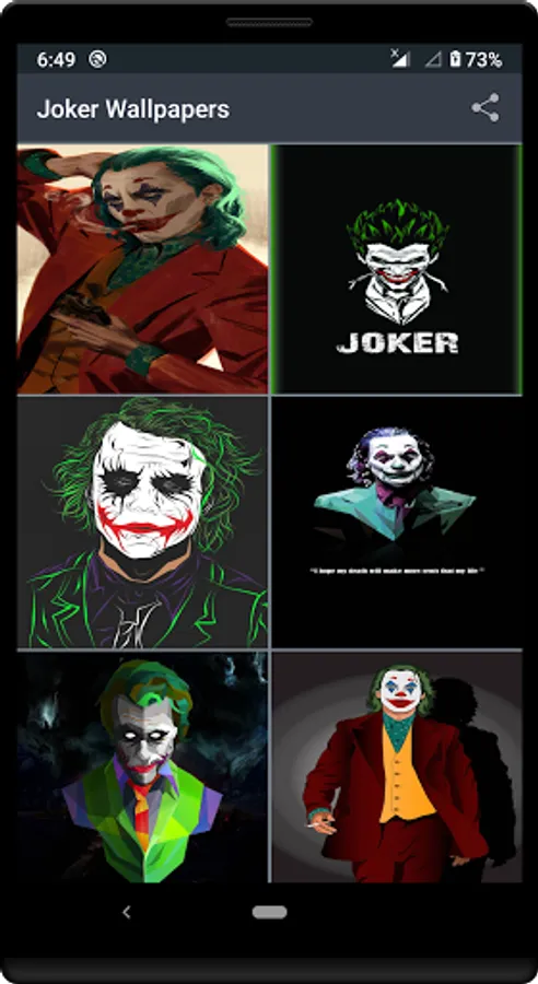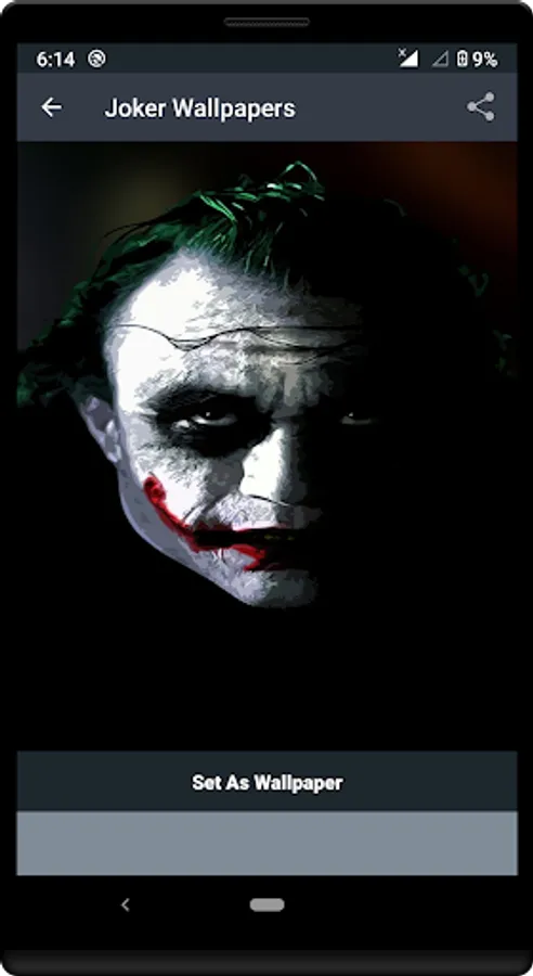 Joker Wallpapers app provides the images of joker and you can also set image as wallpaper. Decorate your mobile screen with your favorite joker wallpaper.