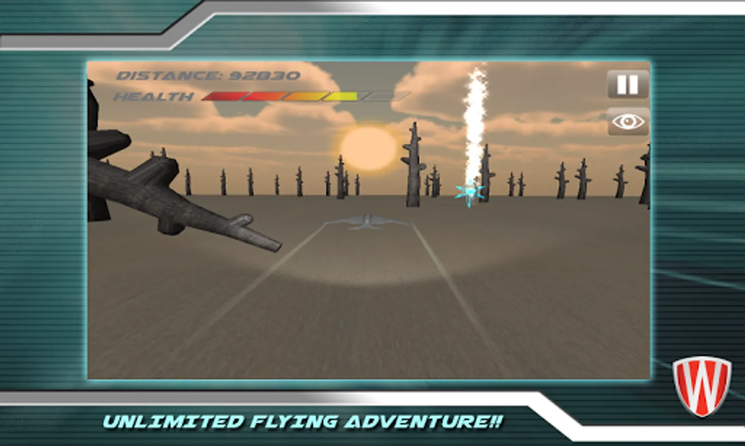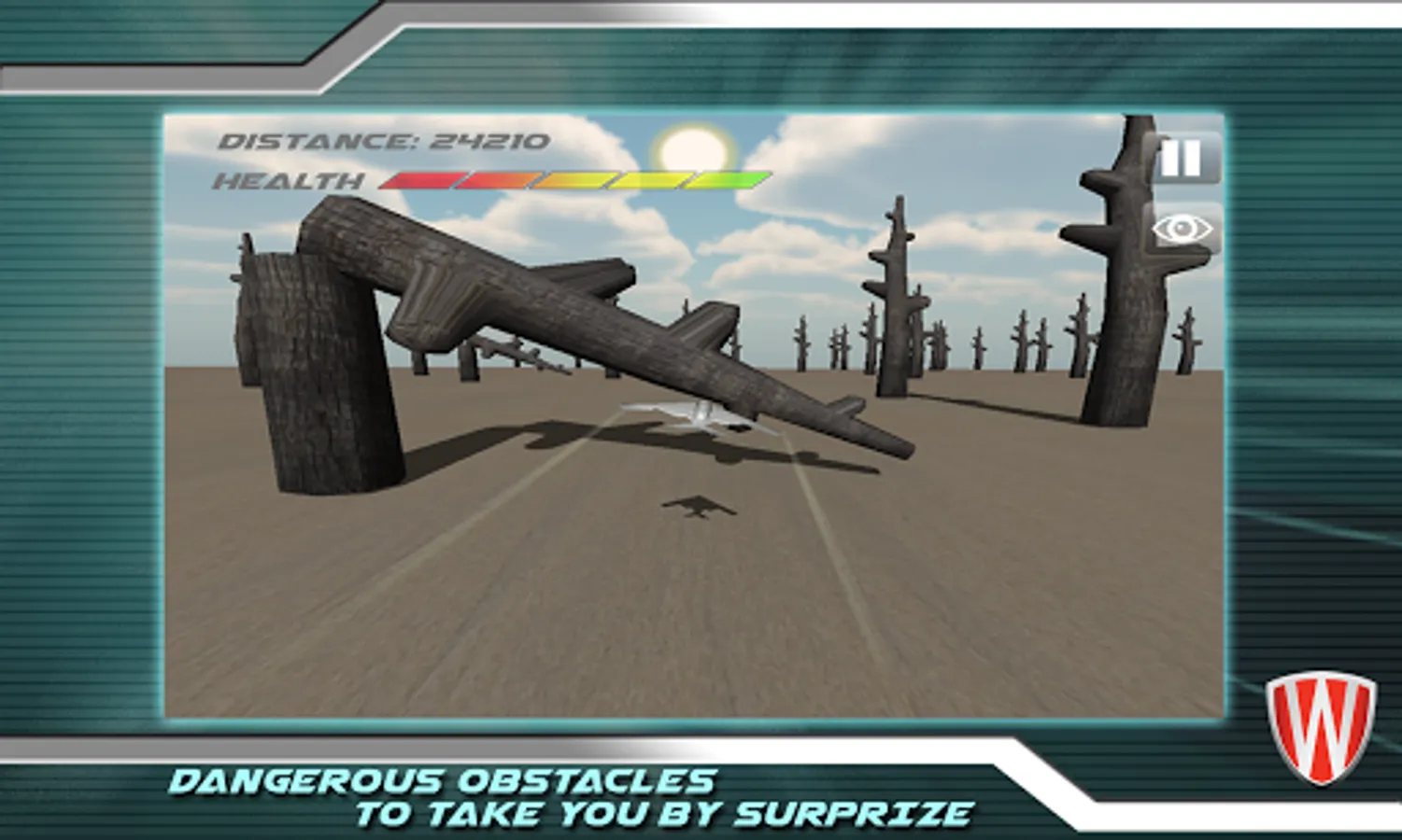 The Sun starts to set slowly and you are on your Stealth Jet to chase it. You fly your supersonic Stealth and in the pursuit you need to avoid obstacles.