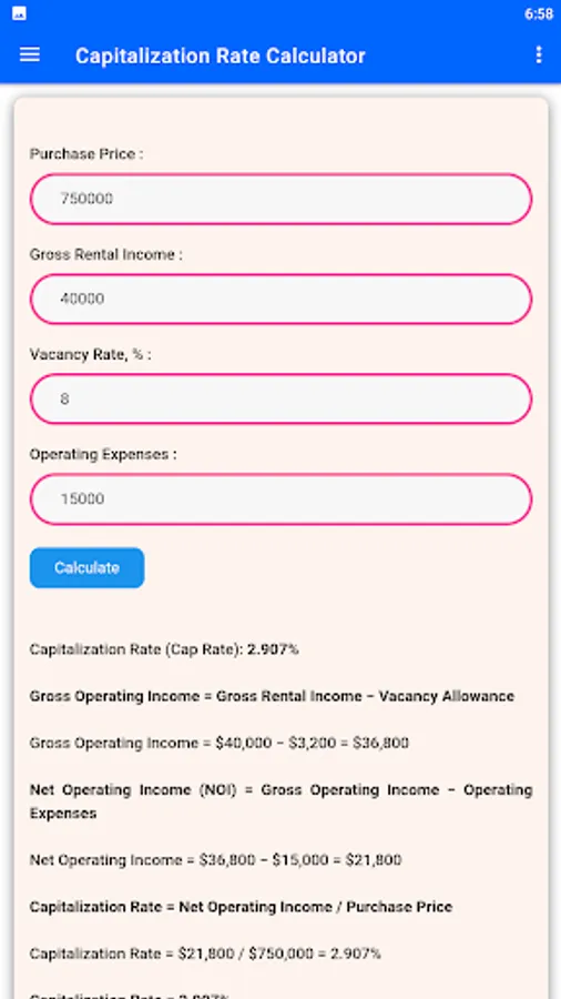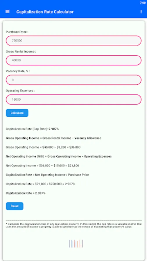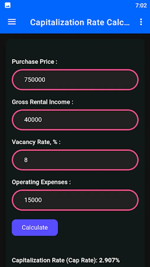 Calculate the capitalization rate of any real estate property. In this sector, the cap rate is a valuable metric that uses the amount of income a property is able to generate as the means of estimating that property's value.