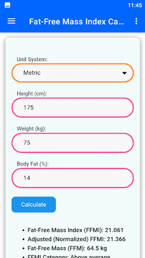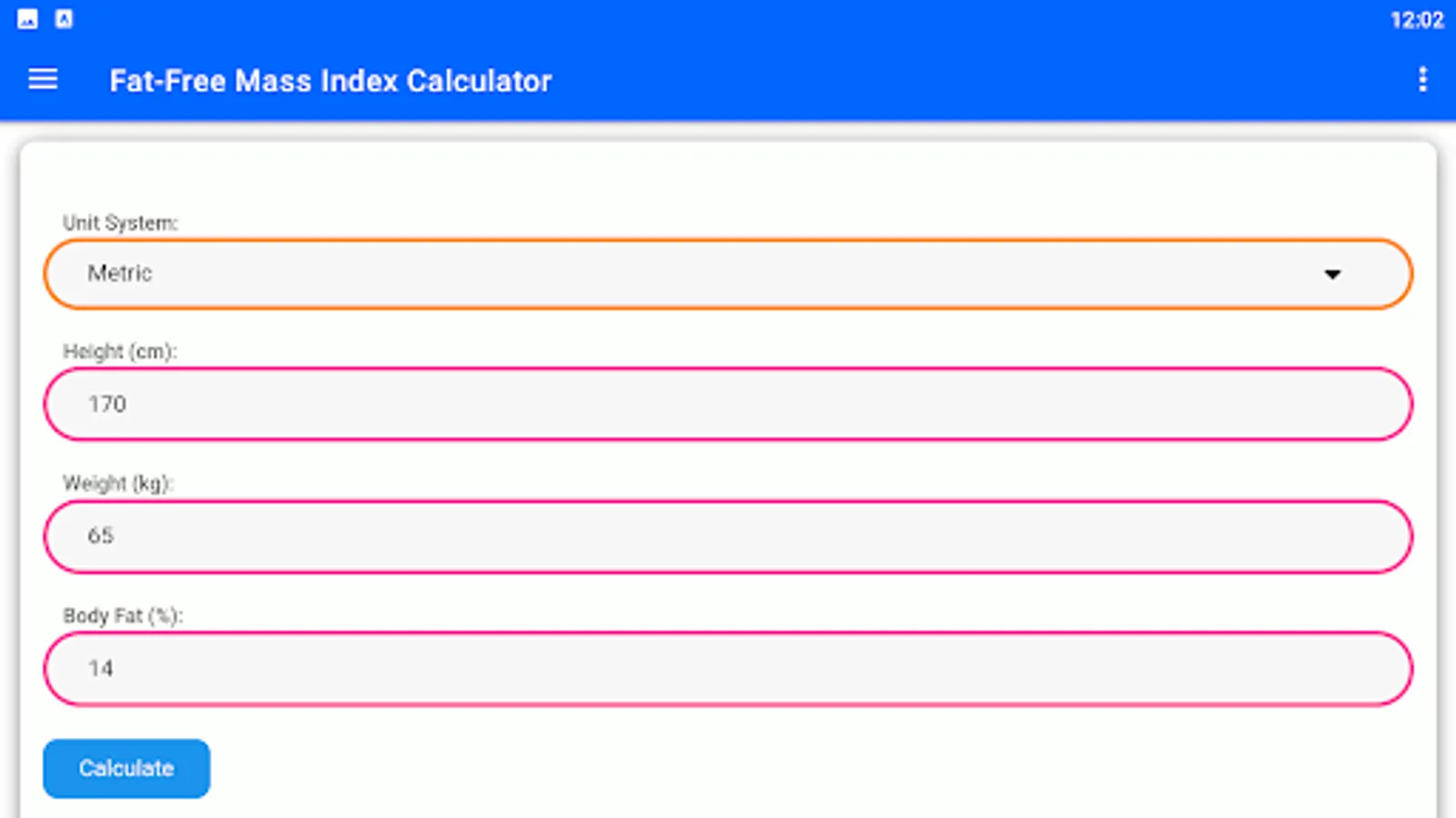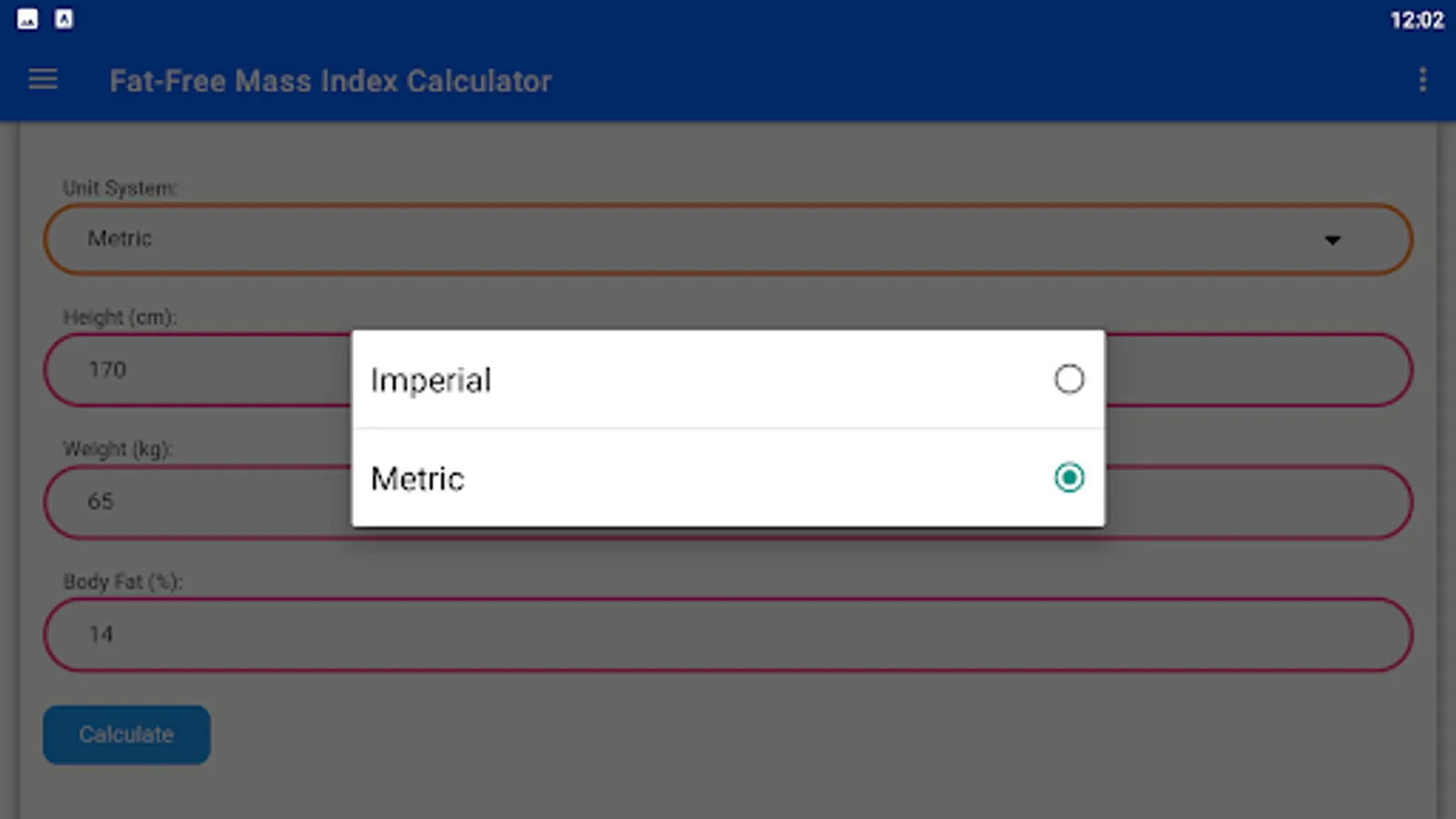 The App has both measurement system : Imperial or Metric. Simply enter your Body Fat Percentage, Weight & Height; and know