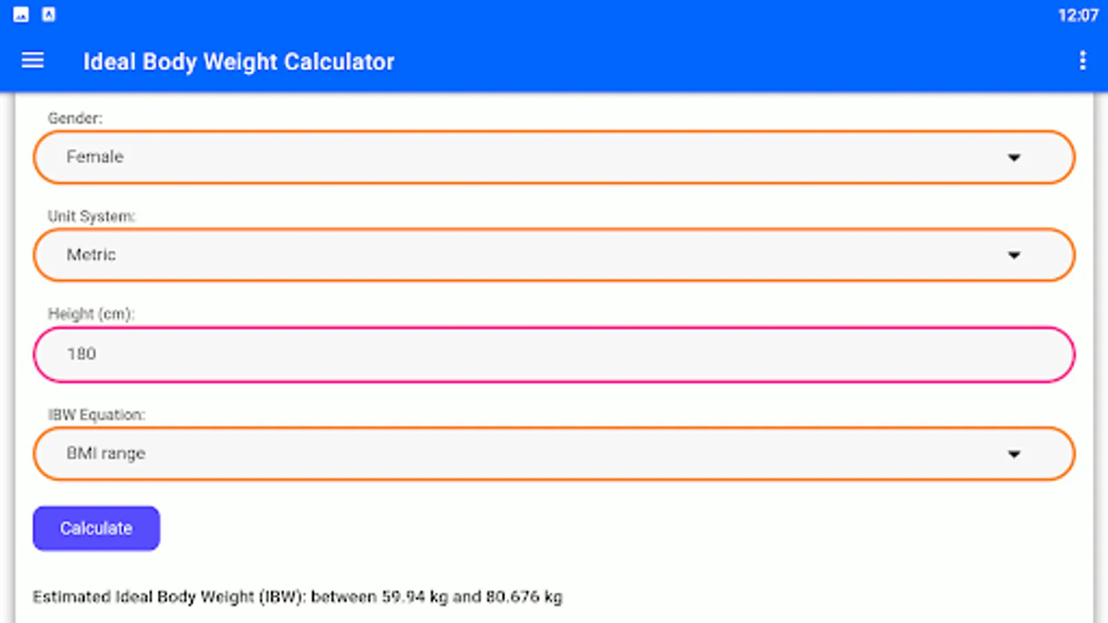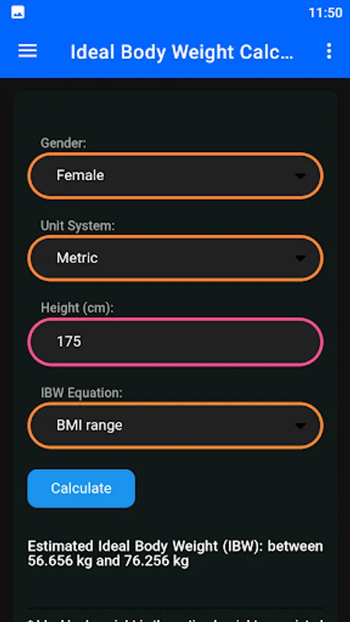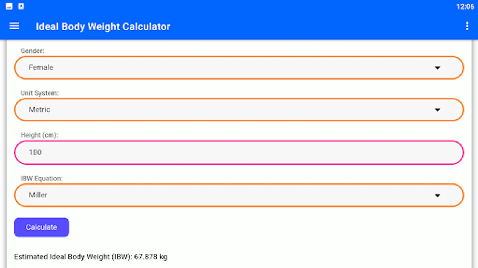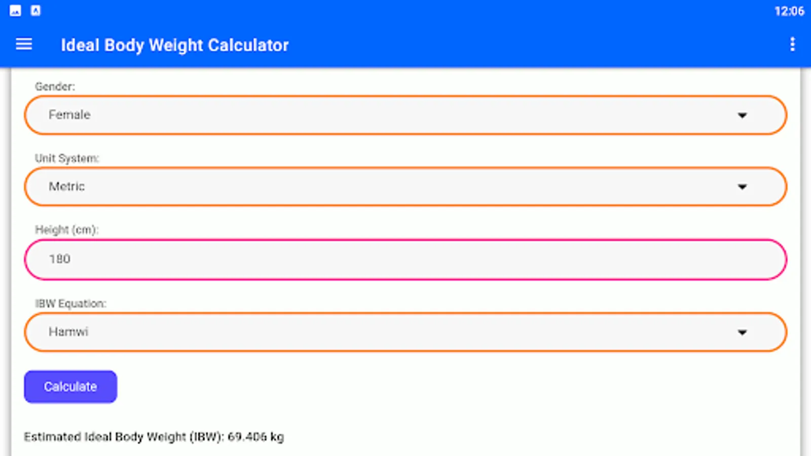 Calculate your Ideal Body Weight (IBW) in pounds or kilograms, based on your height and your gender. The IBW equations that are used here:
