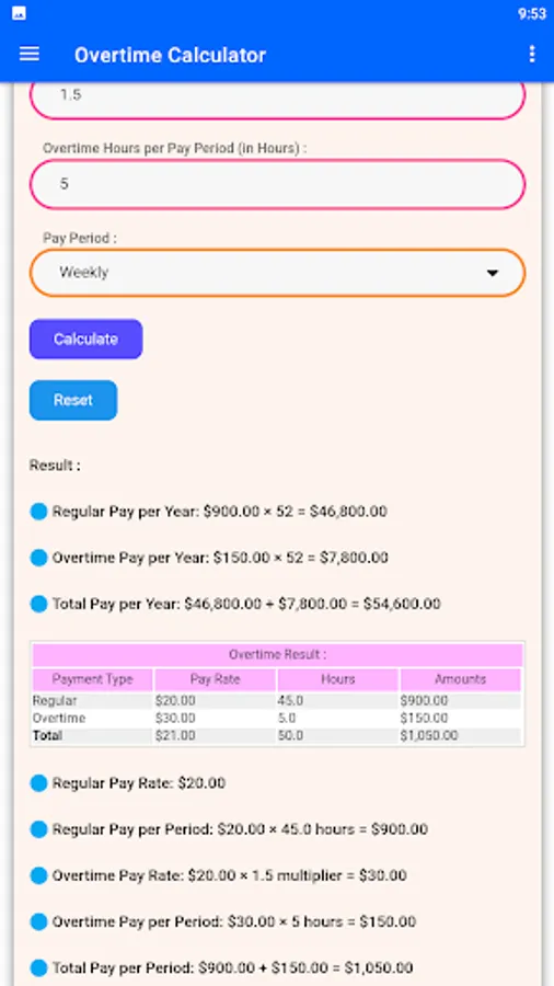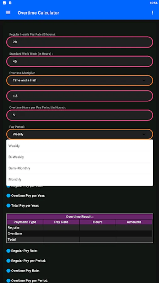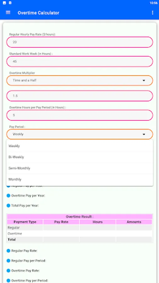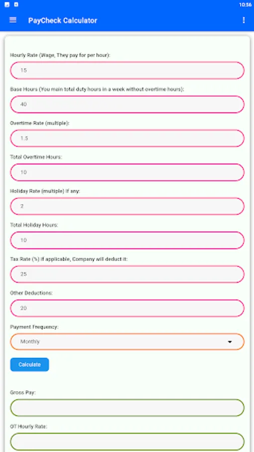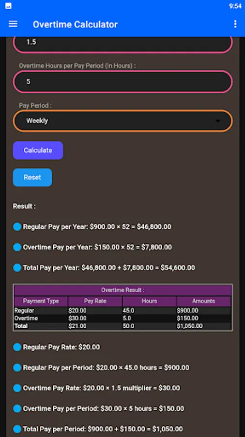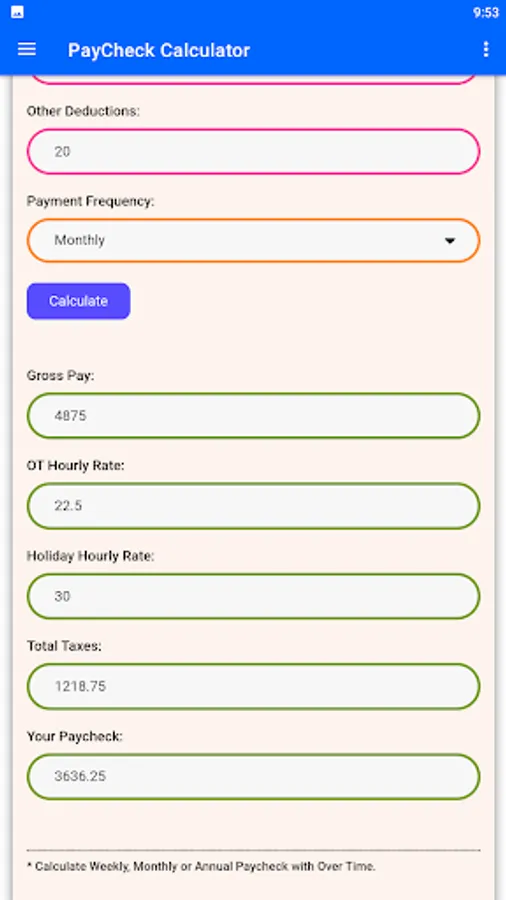 Calculate Weekly, Monthly or Annual Paycheck with Over Time.