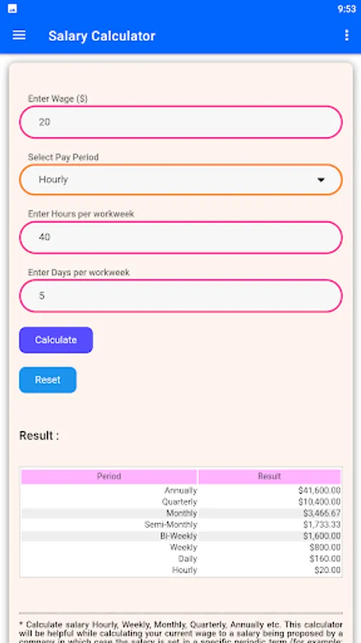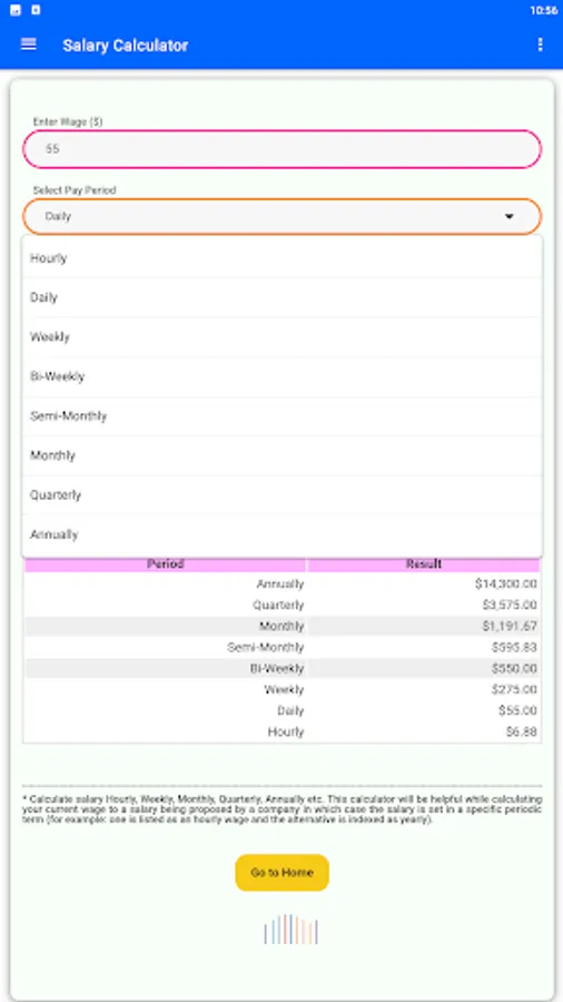 Calculate salary Hourly, Weekly, Monthly, Quarterly, Annually etc. This calculator will be helpful while calculating your current wage to a salary being proposed by a company in which case the salary is set in a specific periodic term (for example: one is listed as an hourly wage and the alternative is indexed as yearly).