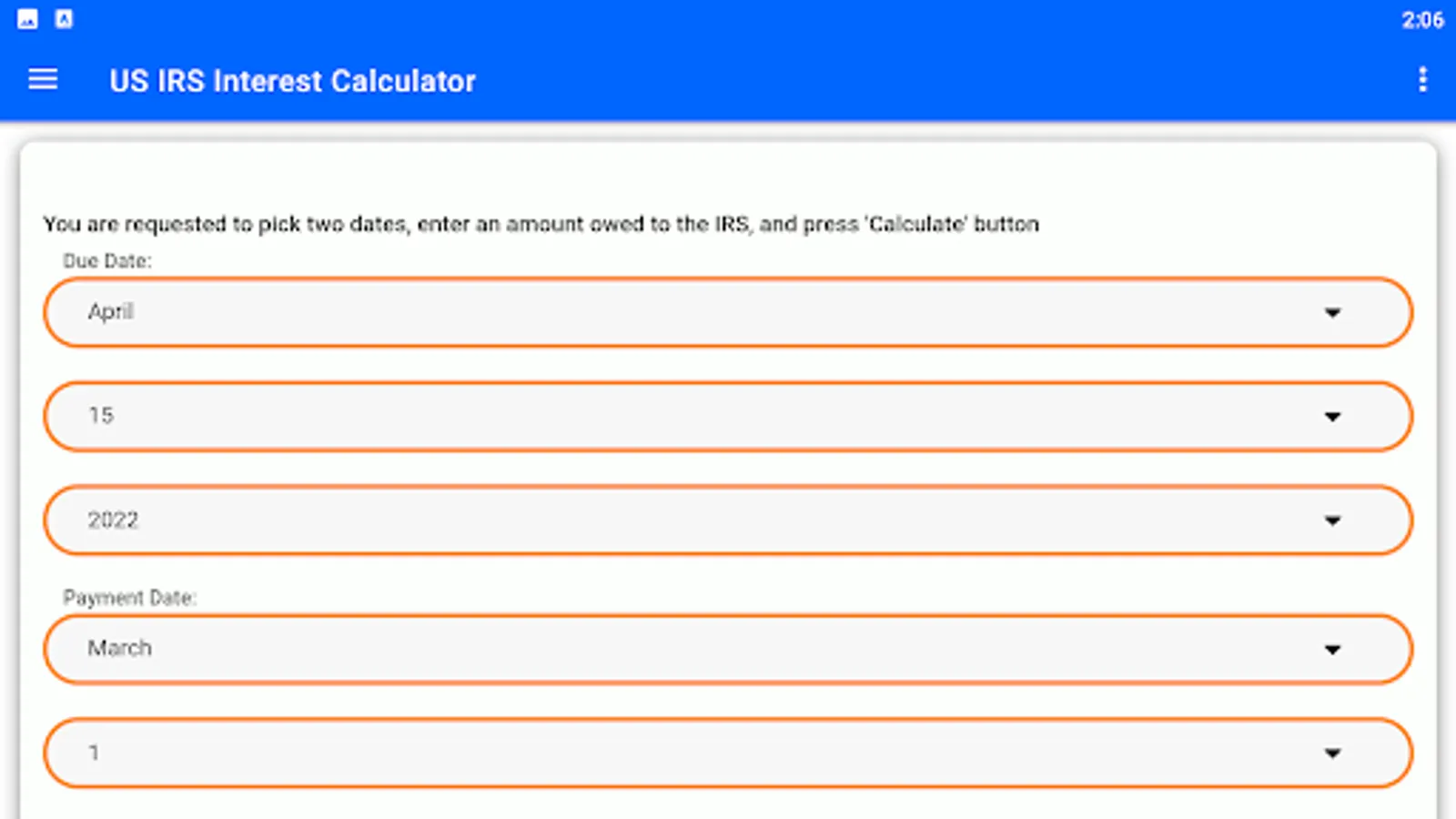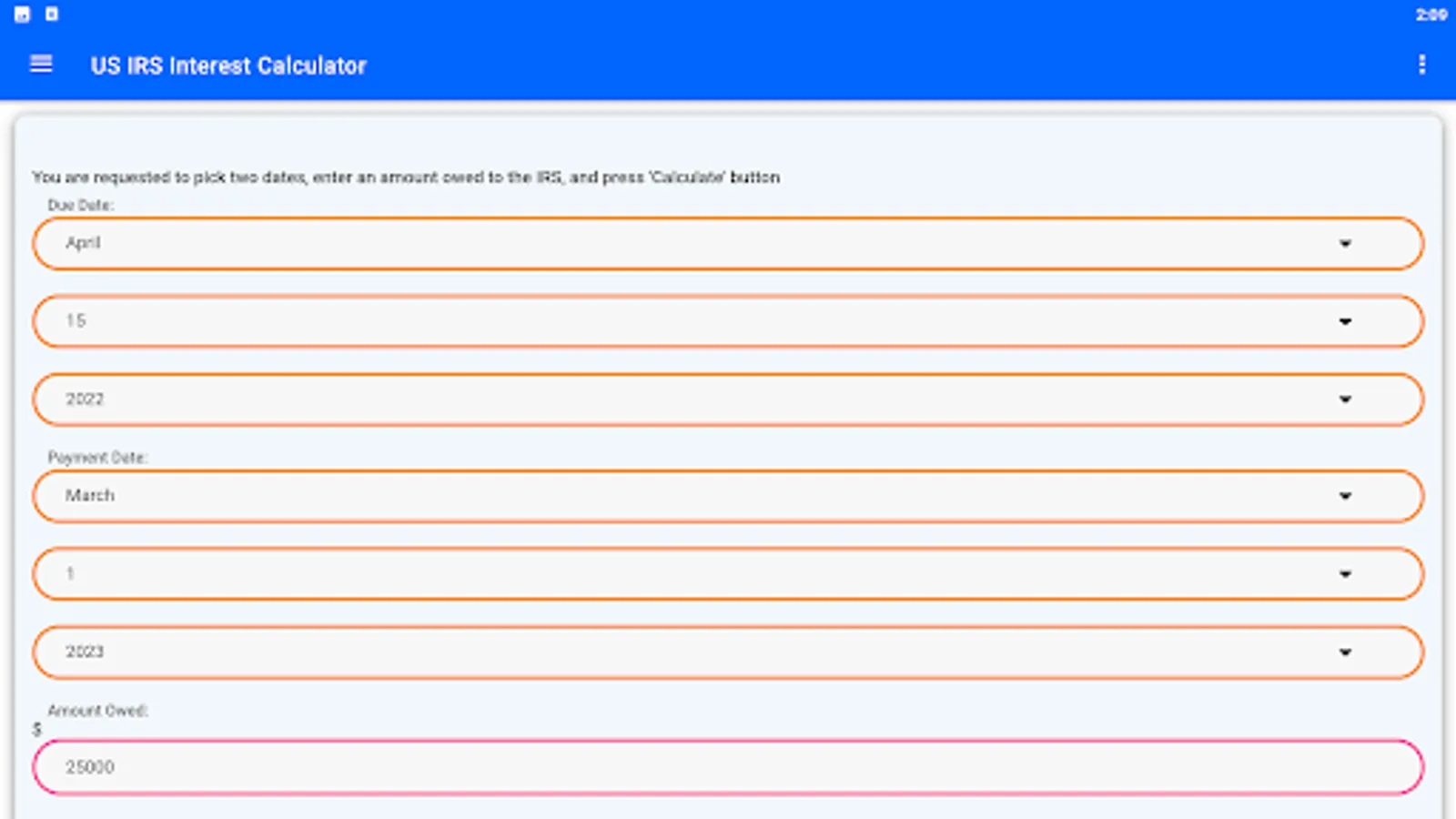 If you don't pay your tax on time, then IRS will add interest to the amount that you already owe. More so, this interest is added on a daily occurrence, right up until you fully pay the money that you owe them. Even if you have requested a time extension, you must pay this interest as the extension only applies to the time that you have to pay the taxes. This IRS Interest Calculator is designed for the use of individuals (both single and married) and not for the use of companies. Furthermore, the IRS interest rates which this calculator uses are updated at the end of each tax quarter.