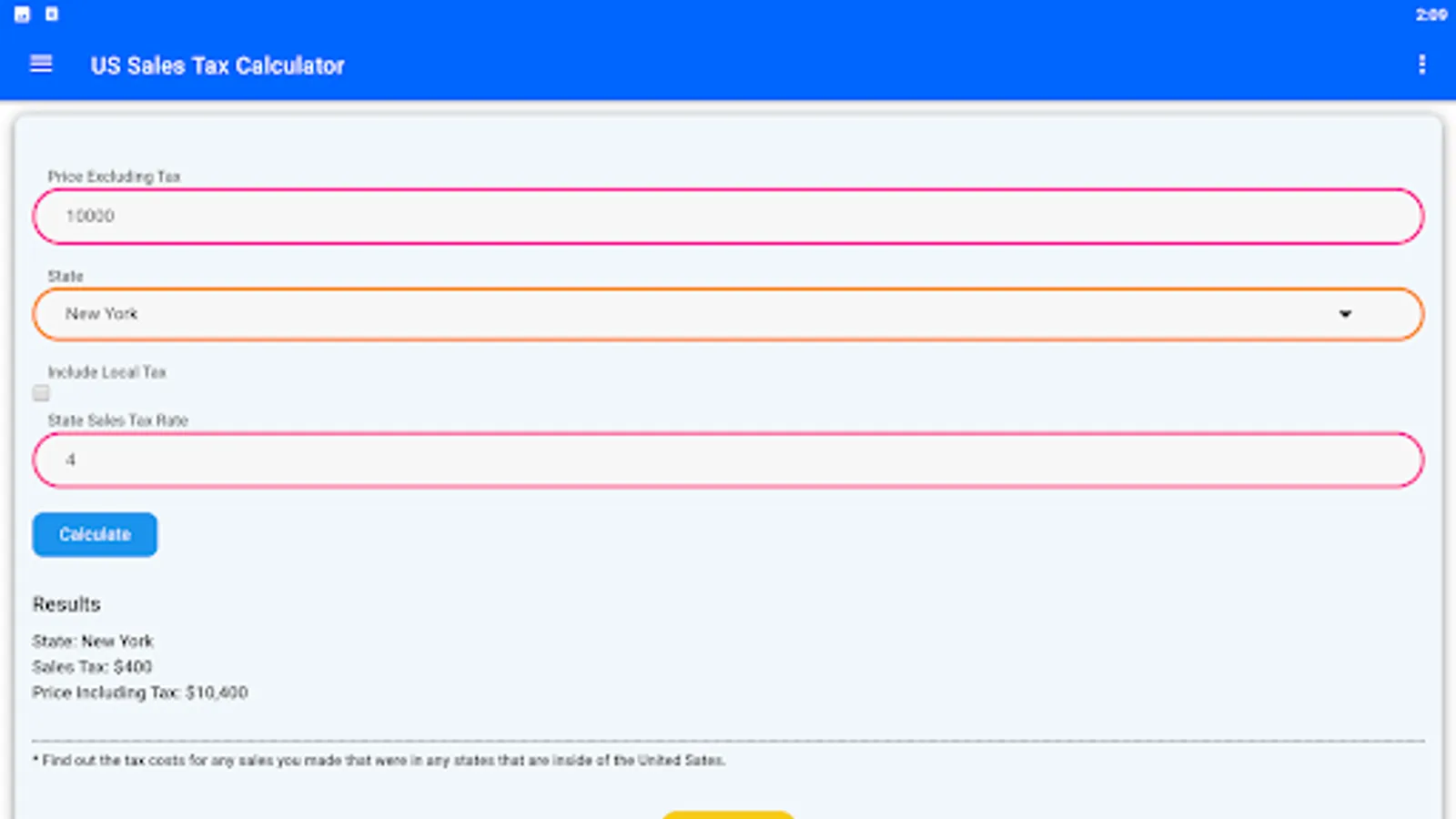 Find out the tax costs for any sales you made that were in any states that are inside of the United Sates.