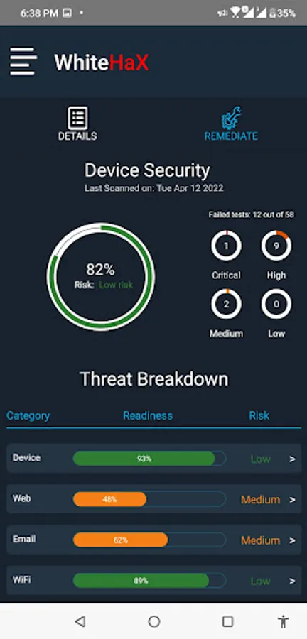 WhiteHaX CyberSafe is a one-of-a-kind, cloud-managed mobile app for protecting mobile devices by first performing a thorough verification of a mobile device cyber-readiness, its OS and App settings and network security against several threat scenarios. They offer a wholistic approach to complete mobile security and data privacy.