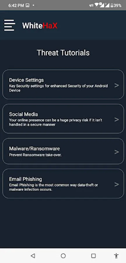10. Comprehensive Threat Tutorials to provide step-by-step details on how to enhance security of the mobile device, social media apps as well as detect Email Phishing, Unauthorized Malware Apps and others threats.