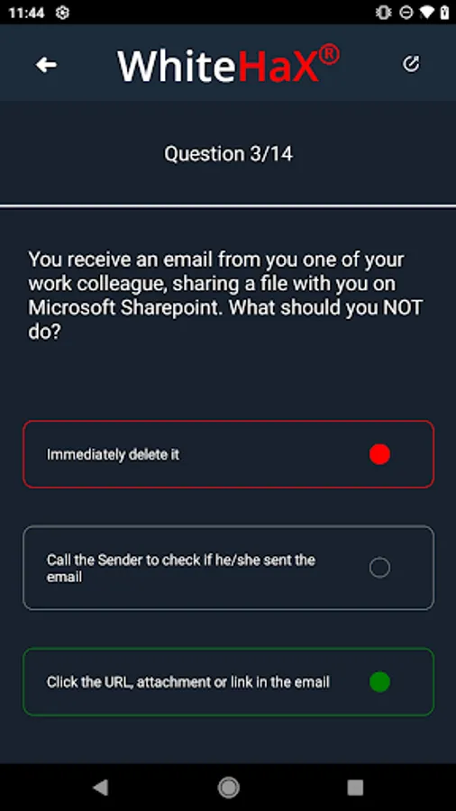 WhiteHaX CyberTrainings is a companion app to our WhiteHaX CyberTrainings, cloud-based phishing training & readiness verification platform for businesses. It allows users to use the app for learning how to detect various types of phishing scams in general emails boxes or Microsoft Office365 type of email platforms. The app is designed to provide phishing detection training in a fun, interactive manner with tutorials, quizzes and games that users can play to understand phishing scam risks and how to detect and block such scams coming to them in emails.