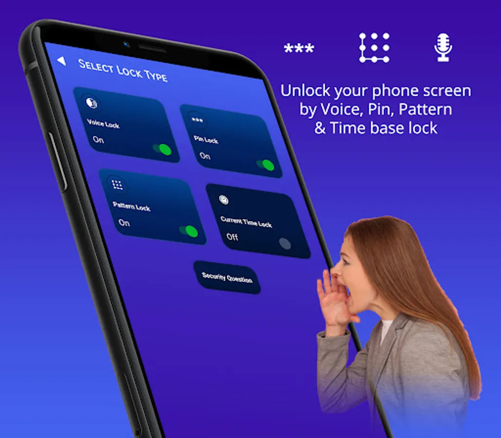 Voice Lock Screen provides a novel and secure way to lock and unlock your smartphone. Say goodbye to traditional password methods and embrace the power of your voice. With Voice Lock, your privacy is taken to the next level, ensuring that no one can sneak a peek at your password.