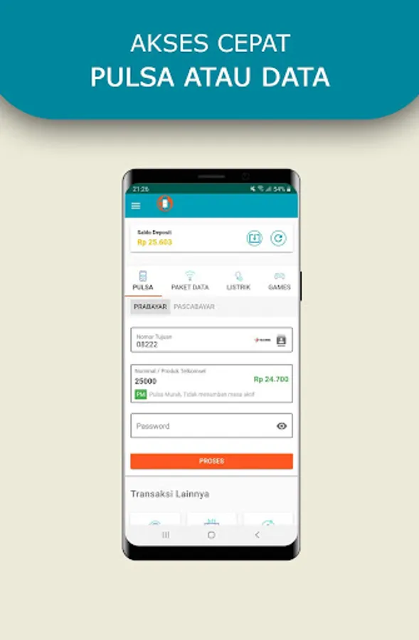 1. Credit transactions, data packages, e money, games, postpaid bills (PLN, BPJS, TV,