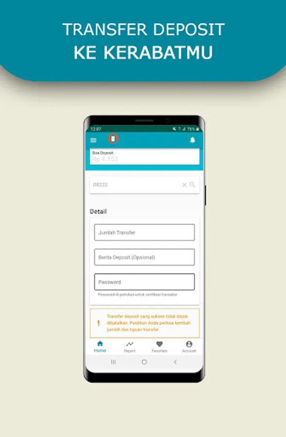 2. Fill the deposit through bank transfer: BNI, MANDIRI, BCA, BRI so that the agent is easy