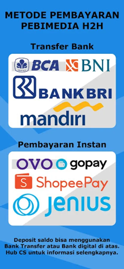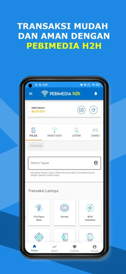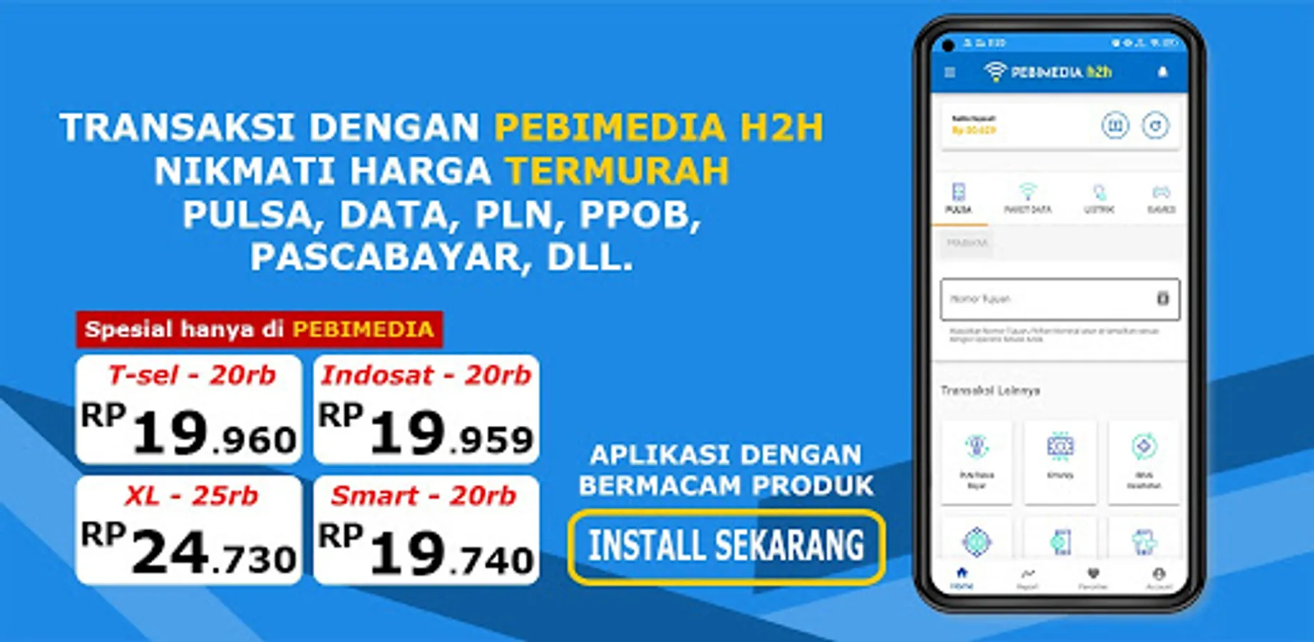 Pebimedia H2H is an agent for credit, data packages, postpaid, PLN, Games, TV, Internet, PDAM, PPOB, ETC with low prices, complete products and easy to use.