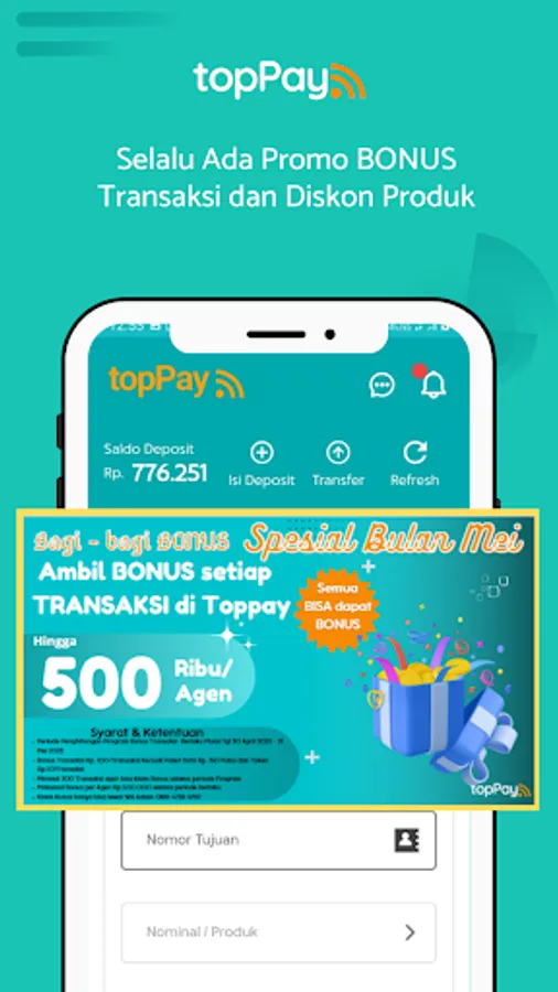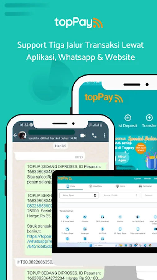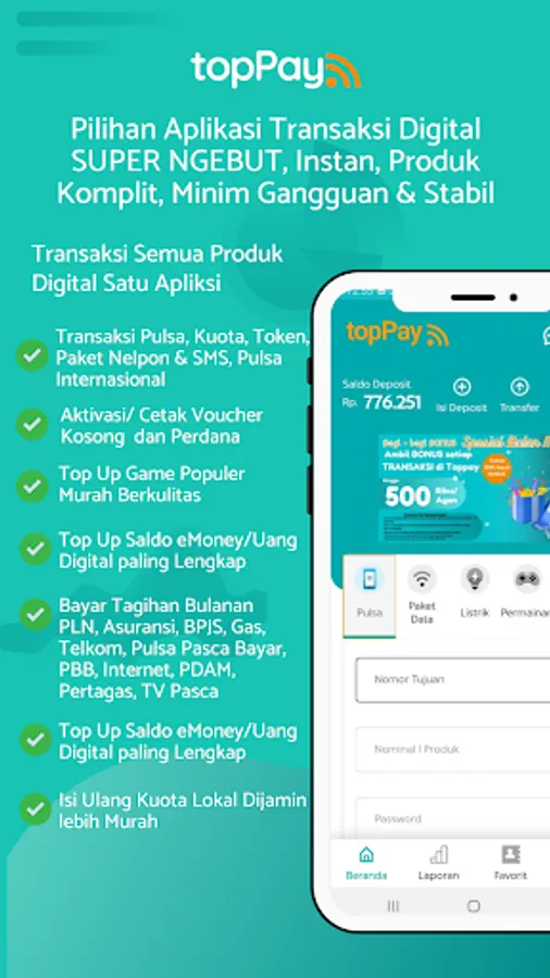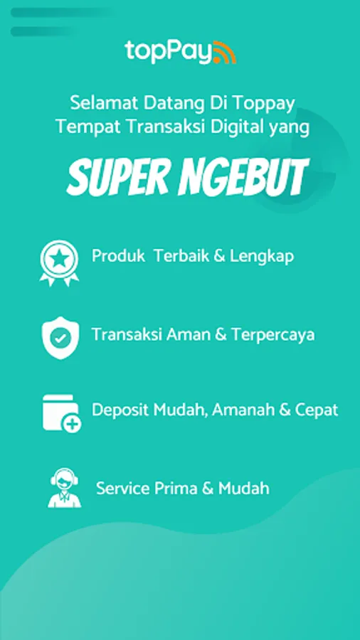 Top Pay is a digital application that serves the purchase of Cheap Credit, Data Packages, Phone Packages, Electricity Tokens, Local Vouchers, Injek Vouchers, Games, Postpaid Electricity Prepaid TV, BPJS, Telkom, PDAM, Gas, Postpaid HP and multi bill payments at throughout Indonesia.