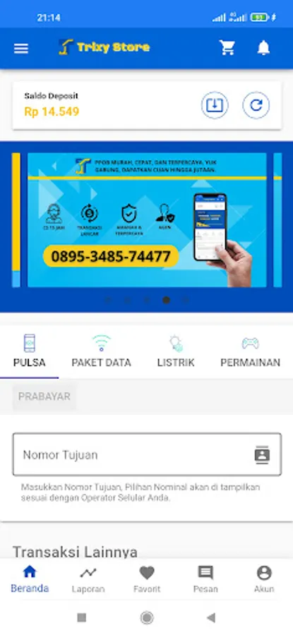 Trixy Store is an agent of Credit, Data Packages, PLN (PPOB) at low prices, suitable for resale of complete products and easy to use.