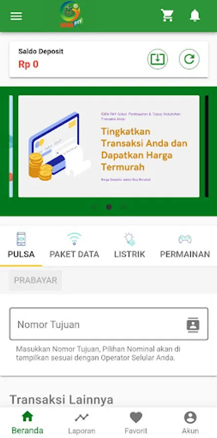Contains the PURCHASE PULSE icon, such as Regular HP Credit, Data Quota Packages, PLN Tokens, Complete Vouchers, Games, SMS and TLP Credit Packages, Tickets, etc.