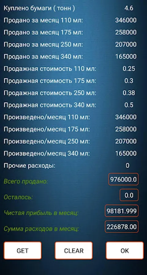Thus, you can see the profitability of the entire production, and understand the payback period of this business.