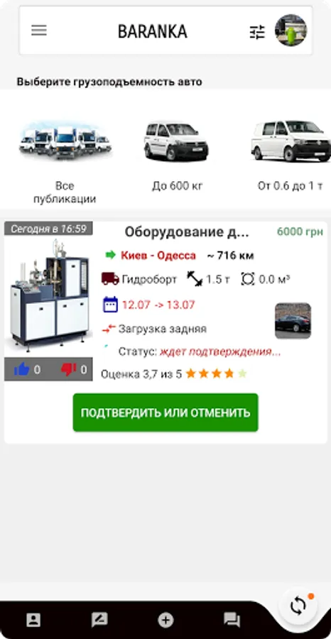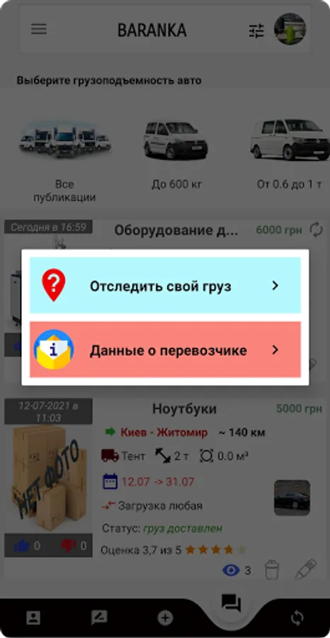 Freight transport is now easier. Cargo search, transport search, all in one Baranka app.