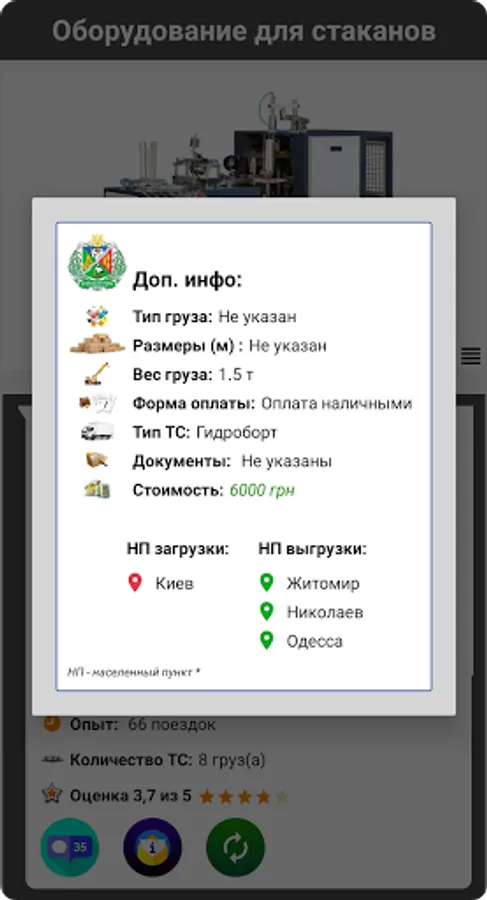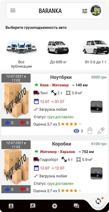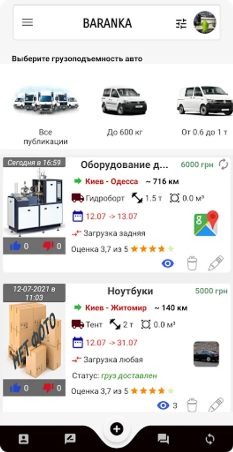 This application was developed to search for goods and vehicles for their transportation throughout Ukraine. If you need to deliver your cargo from point A to point B, download the application and create your request. After that, the necessary transport will be selected for your request.