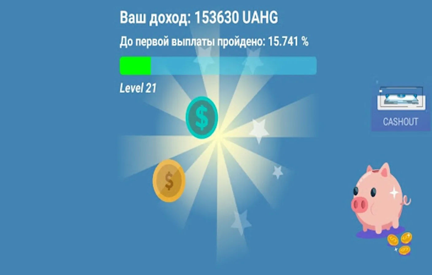 Кликайте на монетки, которые выпадают и зарабатывайте баллы меняя их на реальные выплаты. Наш кликер создан для развлечения. Чем больше монеток вы соберете себе в копилку, тем больше получаете реальной выгоды. С каждым новым уровнем стоимость каждой монетки становится все выше и выше. Дойди до не сгораемой суммы и будешь приятно удивлен. Все кликеры которые есть в интернете, это проста игра на очки и не более. Наш кликер это совершенно другая модель игры. Установи и просто кликай по монеткам, удваивай бонусы в супер играх. Кликер теперь превратился из простой скучной игры в прибыльное занятие. Кликай по экрану, попадай по монеткам, доходи до реальных бонусов и получай реальные былы, которые ты сможешь обменять.