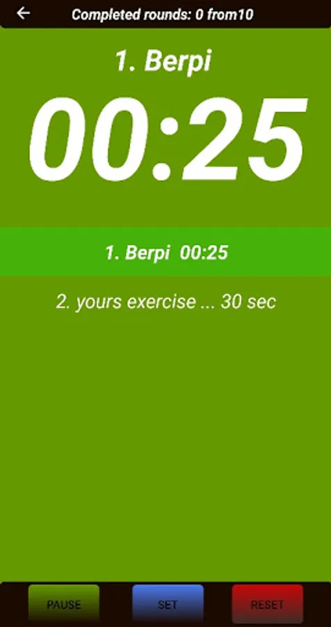 - You can add your exercises to the timer, which are displayed on the screen and you do not need to remember which exercise is next
