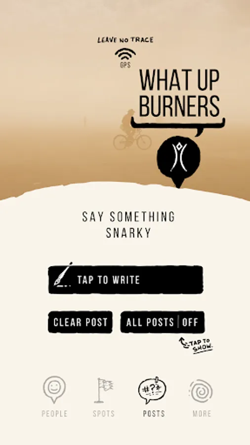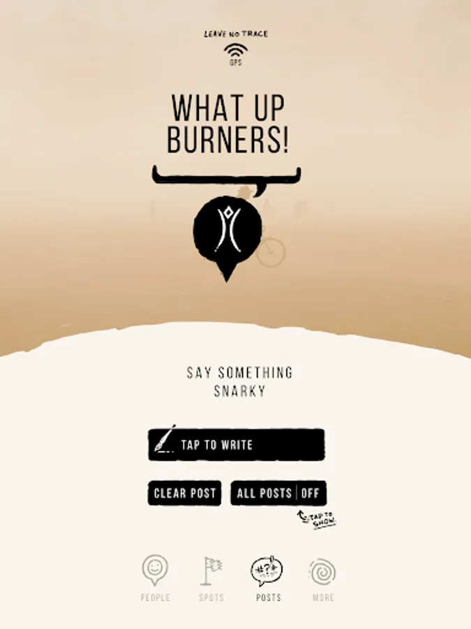 Posts: A public forum for our community. Add your snarky two cents by saying something clever that everyone else on the app can see floating above the location you say it. (requires network).