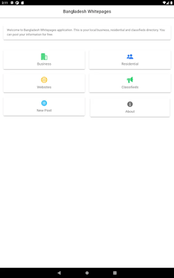 This application provide free businesses, residentials, websites and classifieds post in Bangladesh. You can post advertisement e.g. tuition, rent, hire, sell etc here for free. Advertise your business here for free and let the world know about your awesome businesses.