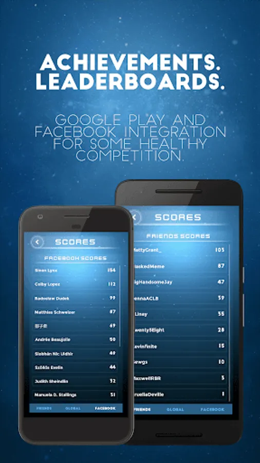 - Google Play and Facebook scoreboards - try and beat your friends!