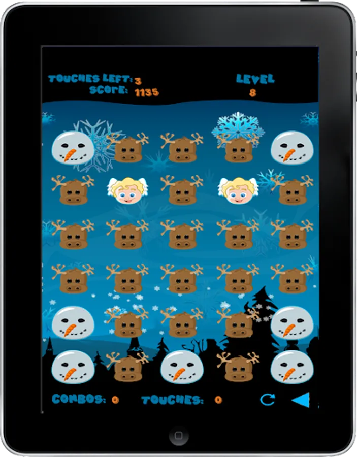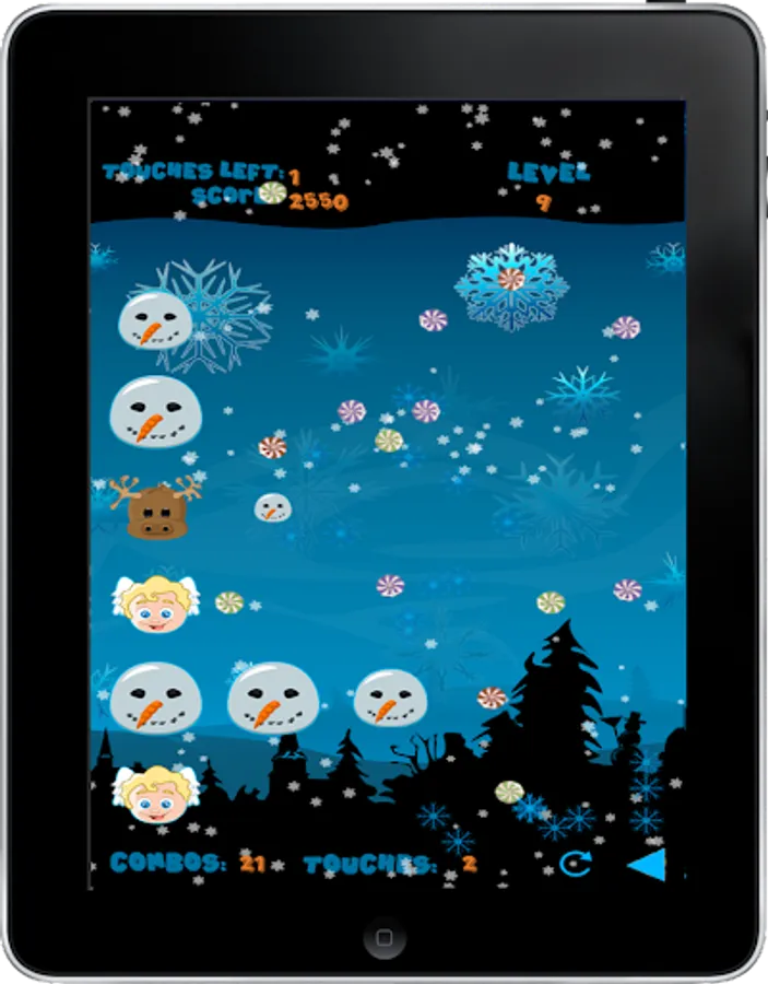 The sweetest chain-reaction puzzle game is back, now with a Christmas theme skin. Santa Claus, Snowman, Angel and Rudolph the Reindeer on the game. Once you get strated, you won't stop this game!. In the game you have to elliminate snowmen, which shoot in 4 directions, starting the chain-reaction.