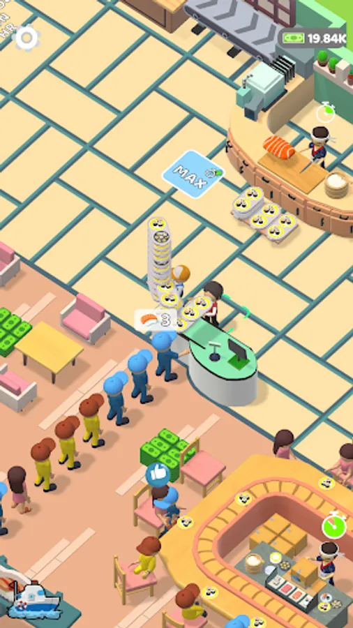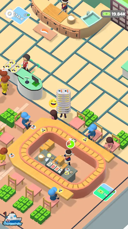 In addition to the fishing gameplay, you will also run a sushi restaurant on the shore, where you can sell the fish you catch and serve customers with their desired sushi dishes. As you expand your restaurant, you can hire staff and upgrade your facilities to attract more customers and increase your profits.