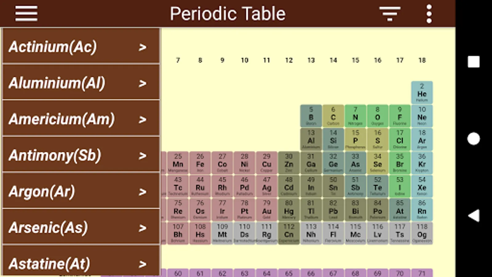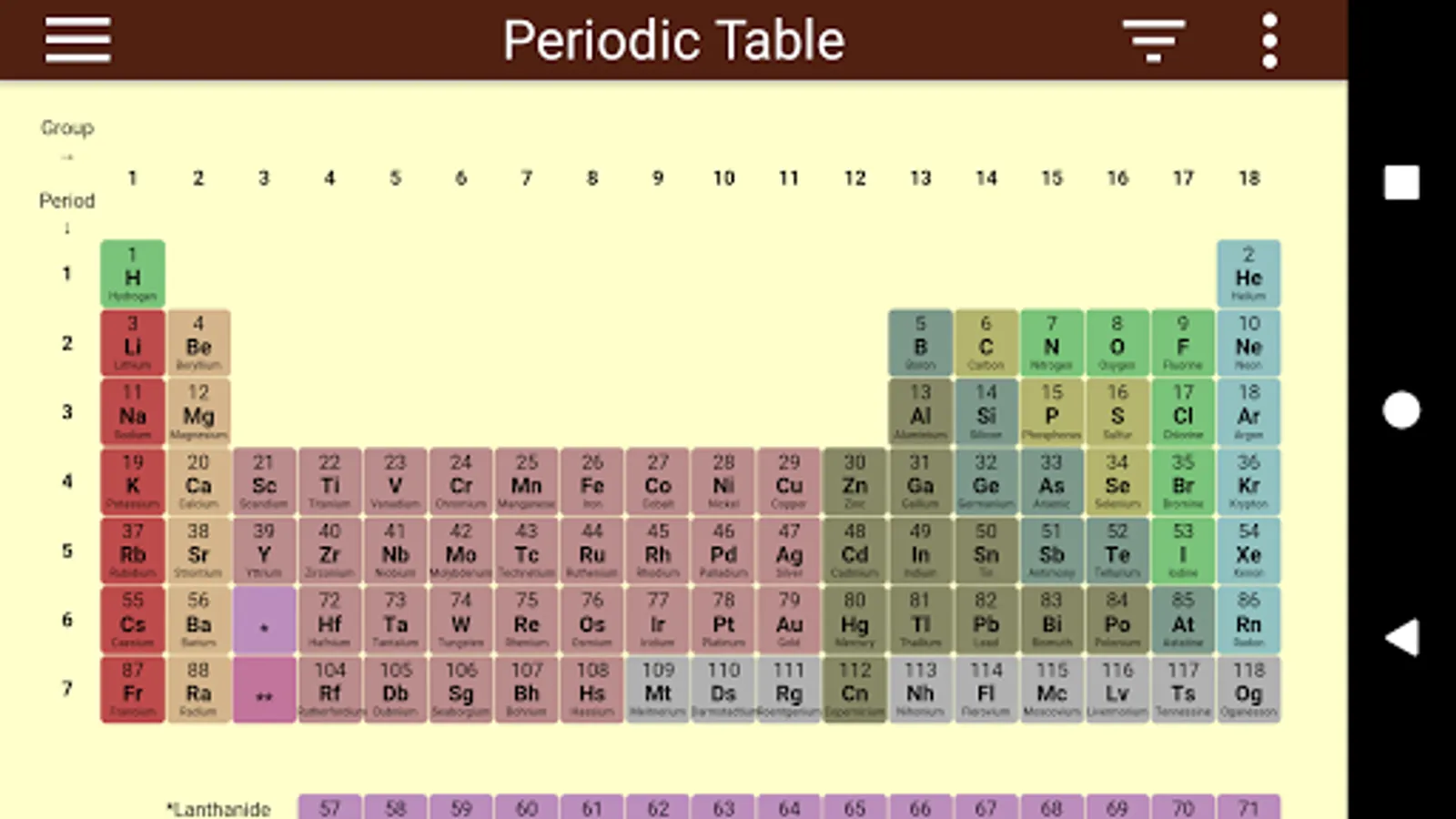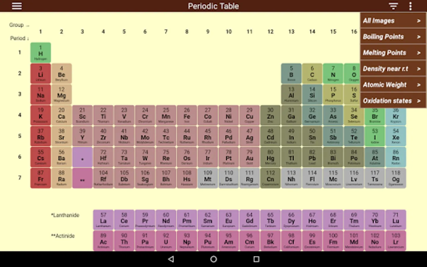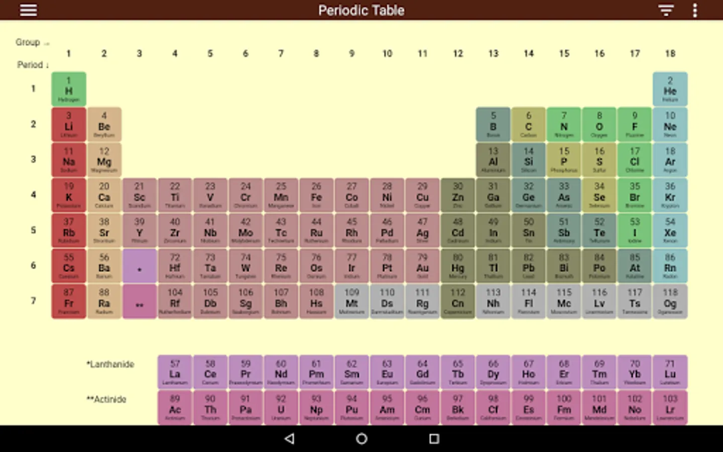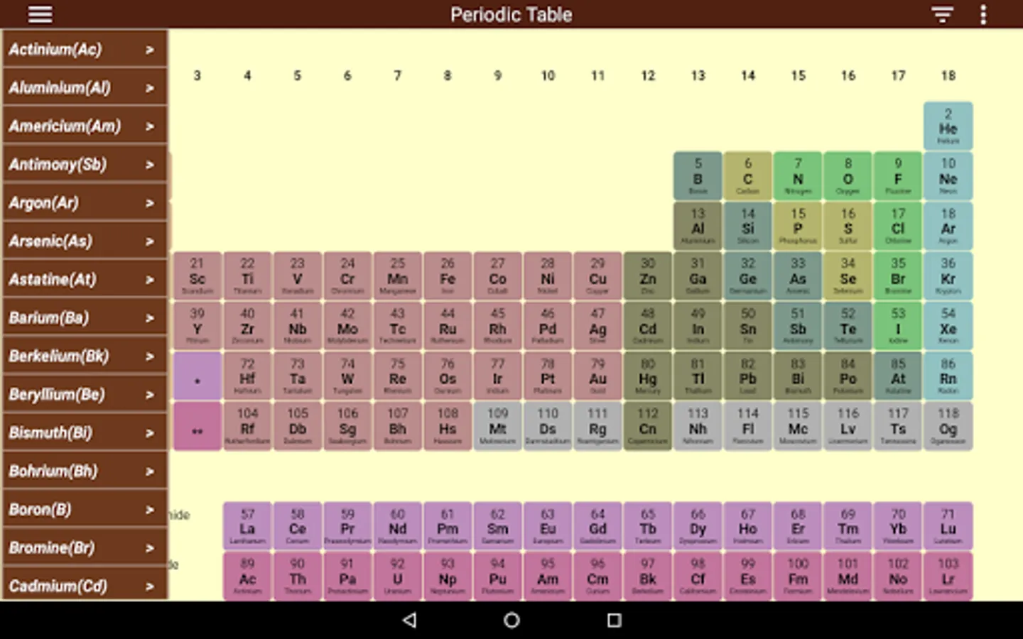 The periodic table is a tabular display of the chemical elements, organised on the basis of their properties. Elements are presented in increasing atomic number. The main body of the table is a 18 × 7 grid, with gaps included in to keep elements with similar properties together, such as the halogens and the noble gases. These gaps form four distinct rectangular areas or blocks. The f-block is not included in the main table, but rather is usually floated below, as an inline f-block would make the table impractically wide. The periodic table accurately predicts the properties of various elements and the relations between properties. As a result, it provides a useful framework for analyzing chemical behavior, and is widely used in chemistry and other sciences.