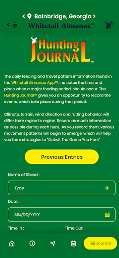 • Search Hunting Journal Previous Entries by – Date / Location / Pre-Rut / Rut / Post-Rut Activity