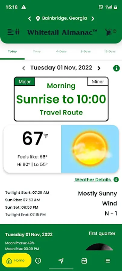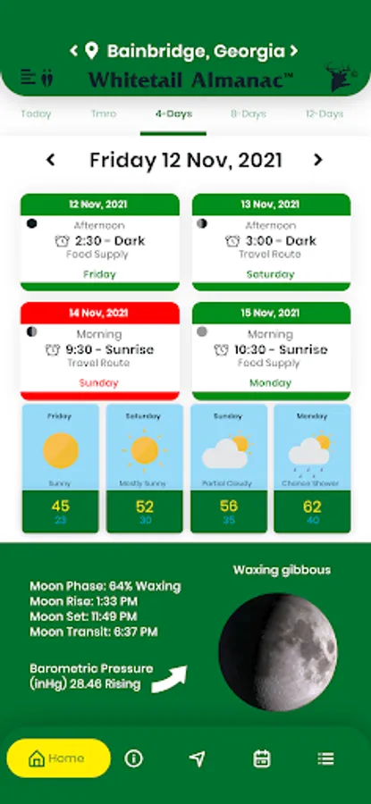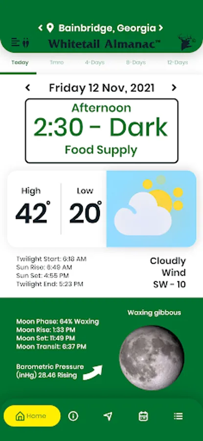 • View Hunting Times by - Today / Tomorrow / 4-Day / Month