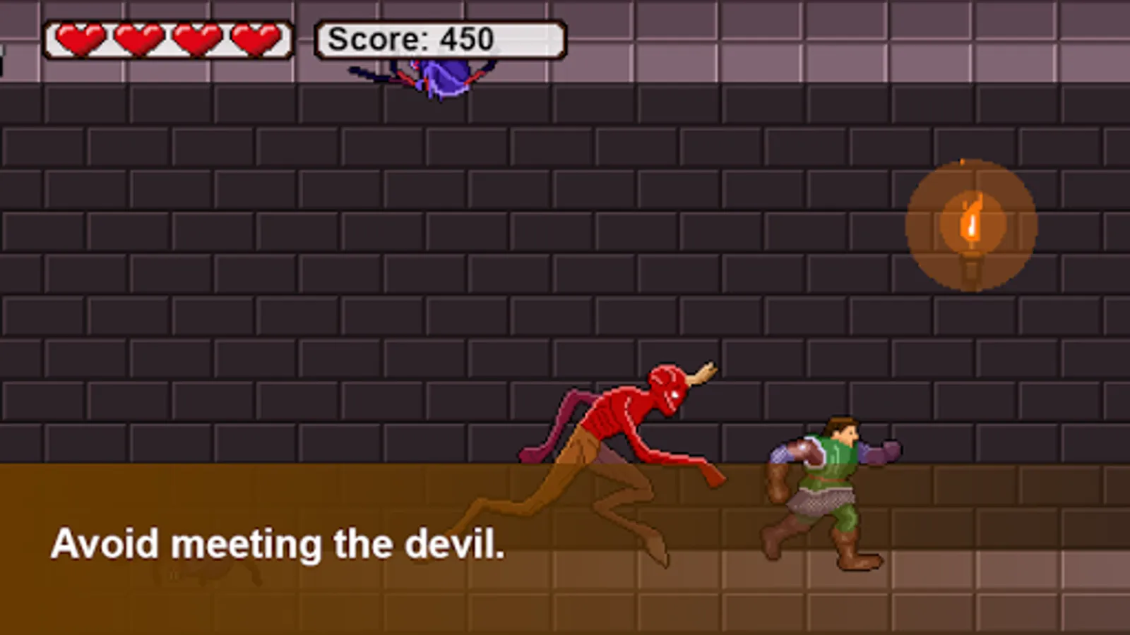 Avoid lots of enemies and traps. Run away as far as possible from the Devil, otherwise he will take your soul.
