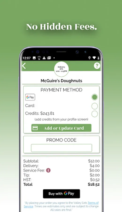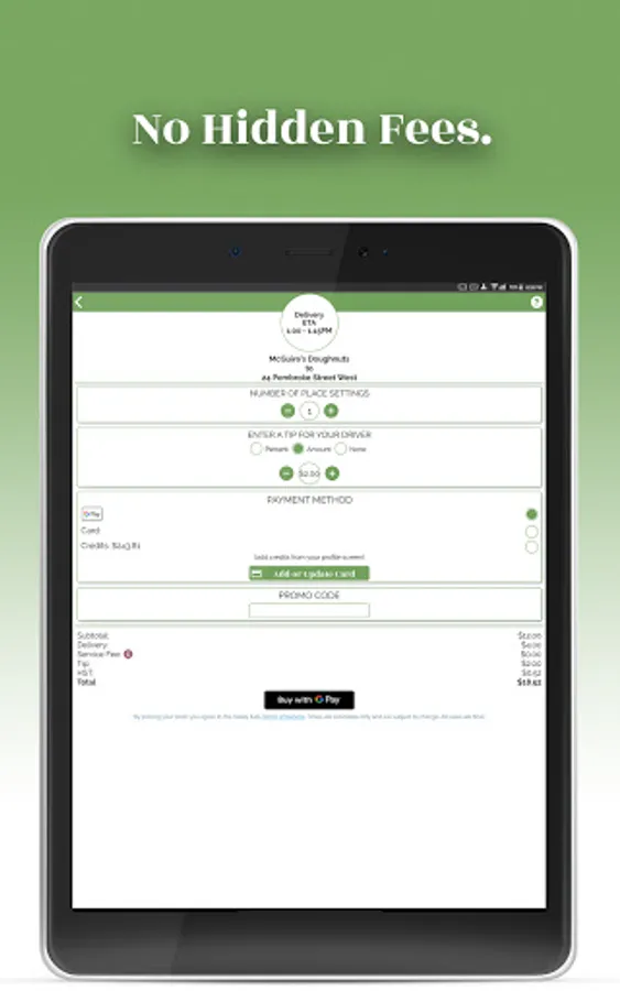 - Multiple payment options: CC, Visa/Mastercard Debit, Google Pay, and preloaded credit cards