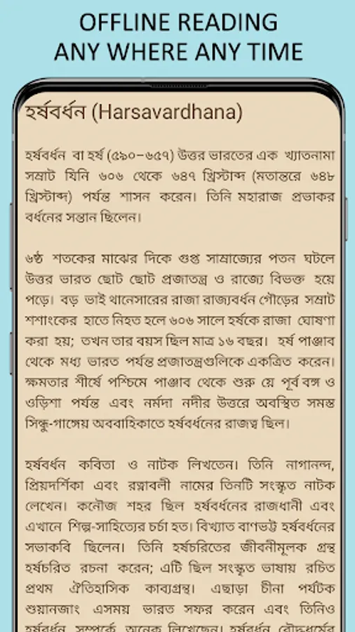 This complete book is subdivided into different historical events in chronological orders for the ease of reading. This pocket application in bengali will provide you the detailed information about great rulers of India, historical battles, dynasties, freedom movements etc.