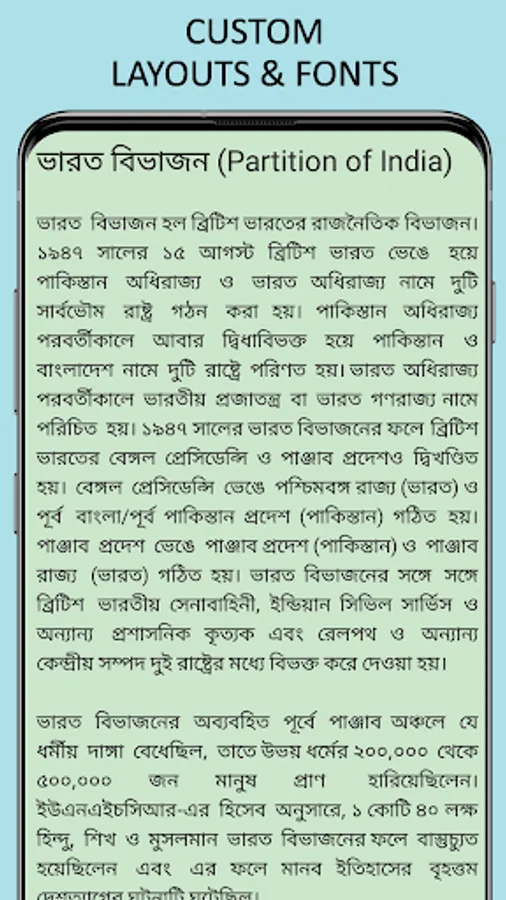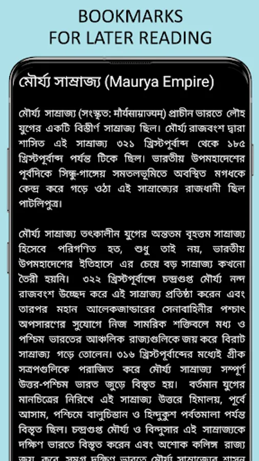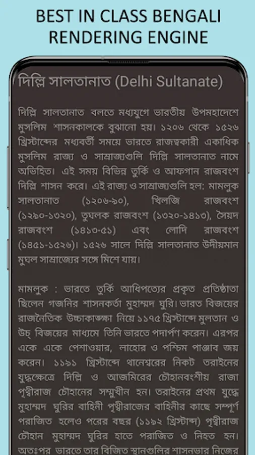 Here is our first app on Bengal language, and we are very proud to present our great beloved nation's history in your android devices. The app, India History, is in Bengal language for everyone to read, literate and improve their historical knowledge.
