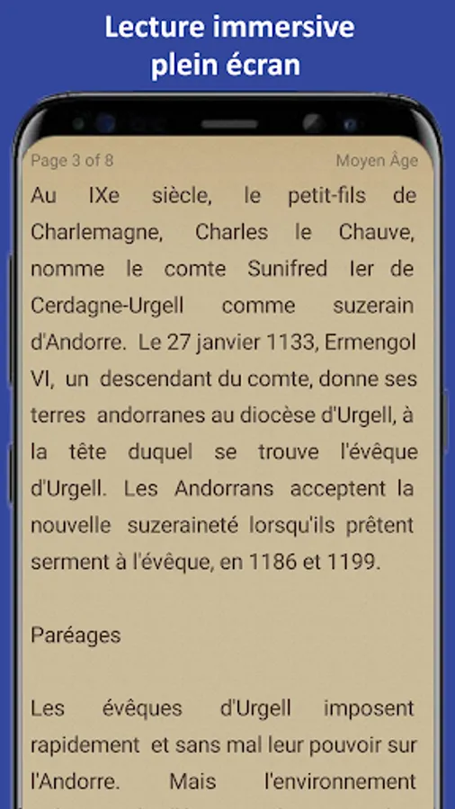 You can add and manage bookmarks to visit the read pages again, you can also open the last read page every time. The pages will appear in full screen mode, you can turn them by swiping left and right.
