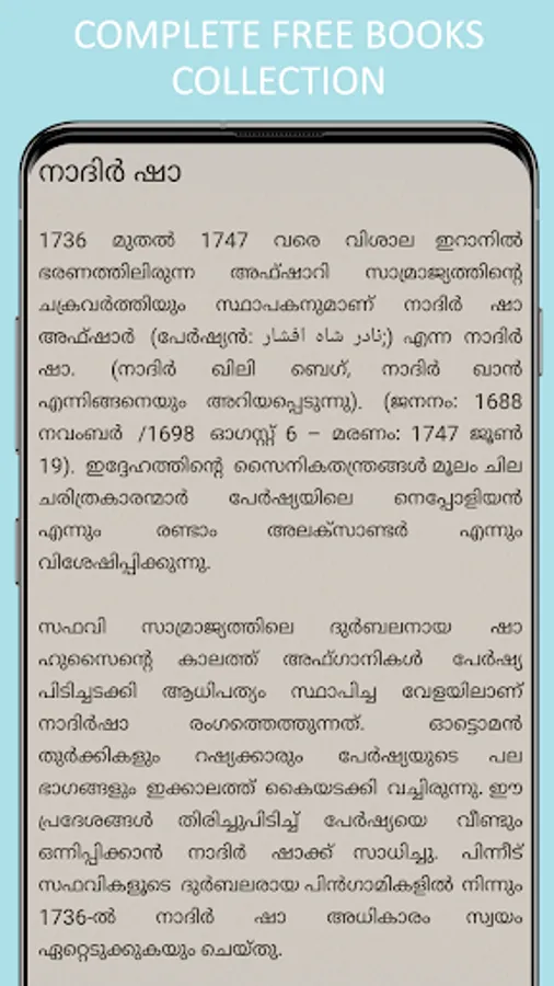 So, go ahead and download the Indian history in Malayalam app, enrich your knowledge of The great History of our nation, India, in Malayalam language.