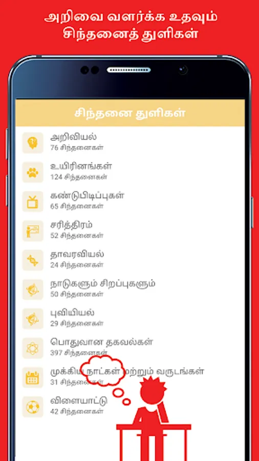 Here With this app, you can improve your general knowledge. The app gives you various information bites in Tamil language. It is good read for kids, youths and everyone who loves to know an interesting facts of this world, lives, indian origins etc.