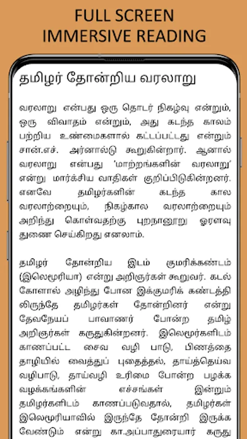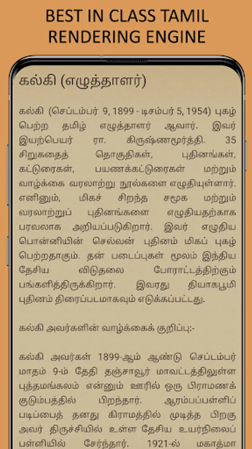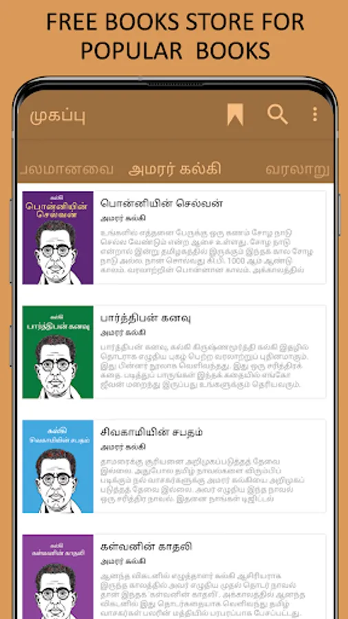 I was thinking for a while about publishing our history in Android. Thanks to Tamil Kalangiyam for collecting the great epics of our ancestors and our great language. I'm sure; we just can't bring our entire history into a mobile or even high storage capacity devices.