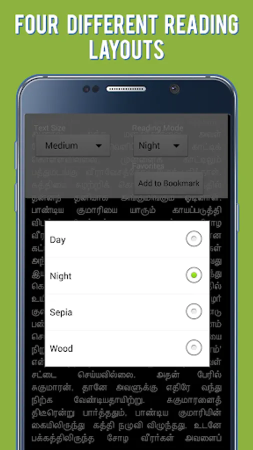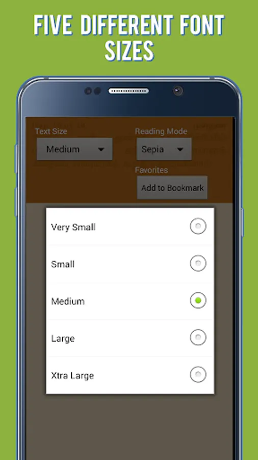 You can change the font sizes and backgrounds to match your own preferences. Below are the set of available reading modes.