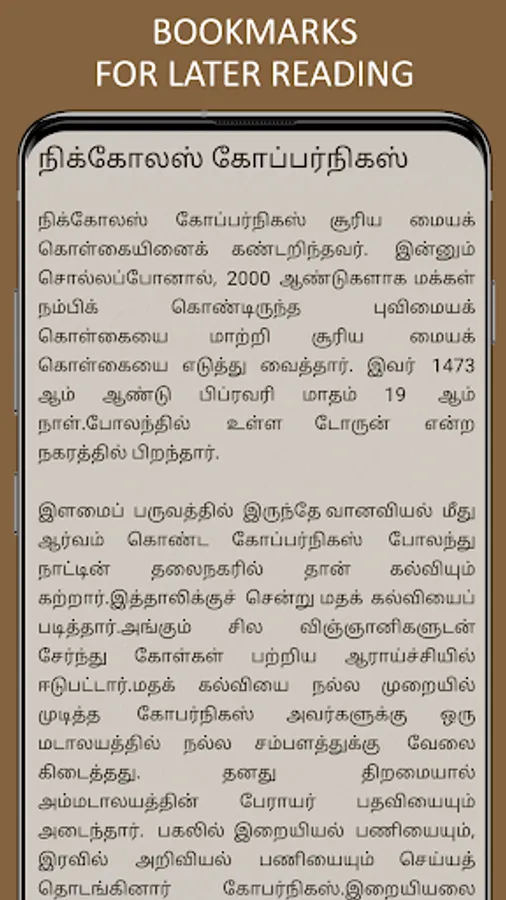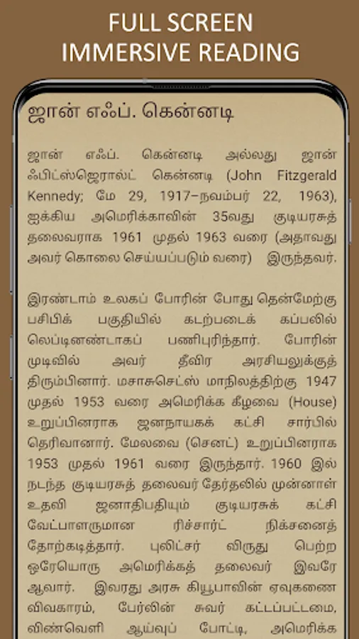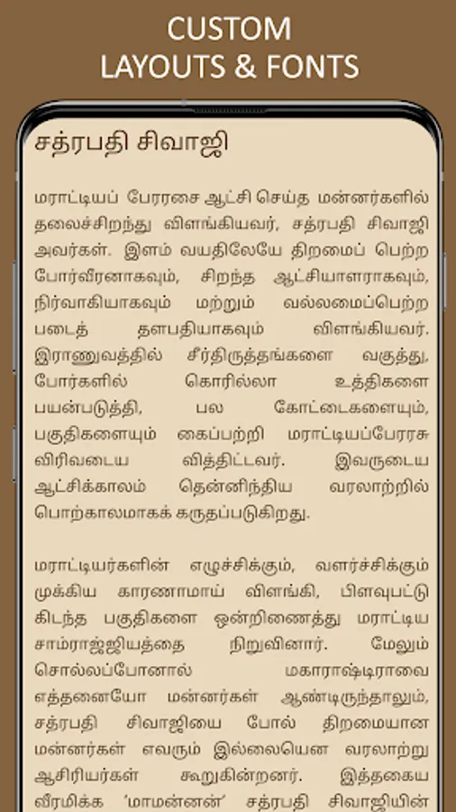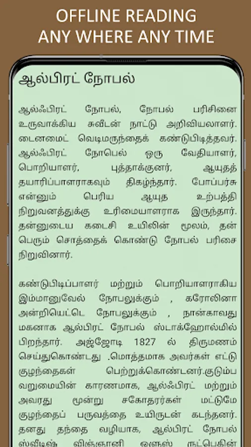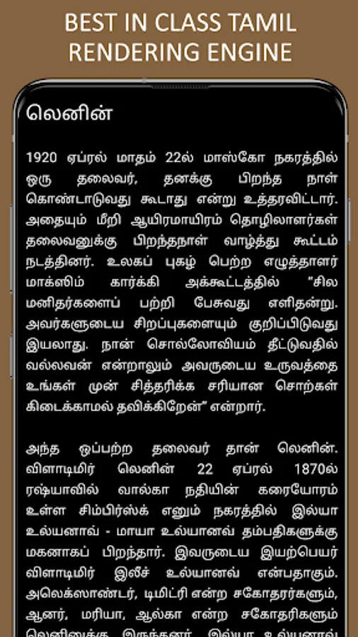 With this app, I'm bringing the life history of world leaders and famous personalities in tamil. You can read the history of our beloved leaders in crystal clear tamil rendering engine I built.